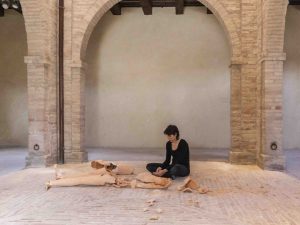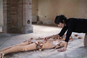 Si tratta di una performance su una scultura, ideata e realizzata da Giulietta Gheller e Alice Toccacieli: Giulietta ha infatti realizzato una statua in terracotta rappresentate una giovane donna a grandezza naturale, con la quale Alice si è relazionata fino a urlarla e infrangerla a terra, un richiamo all’imponderabile, all’evento accidentale che porta danno senza colpa. Una distruzione, quindi, come atto d’inizio per una seconda fase, ricostruttiva: presso il Museo dell’Architettura di Fermignano (PU), ex-mattatoio, per tutta la settimana del 27 marzo, Giulietta Gheller ha lavorato alla ricomposizione dei frammenti fino a realizzare una figura che non avrebbe mai più potuto essere quella iniziale, una statua nuova, con una seconda vita.