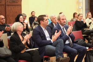 In conclusione il Presidente della Fondazione del Monte di Bologna Pierluigi Stefanini e il Sindaco di Ravenna Michele de Pascale hanno dialogato sul significato che il tema del prendersi cura può avere oggi in un territorio profondamente ferito come quello ravennate.