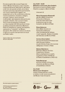 Le relazioni di Maria Giuseppina Muzzarelli, Pietro Delcorno, Matteo Melchiorre e Fabio Bortoluzzi offriranno uno sguardo interdisciplinare su questi temi, mettendo al centro il ruolo dei Monti di Pietà nella storia economica italiana, le vicende storiche del Monte di Pietà di Castelfranco Veneto, la conservazione del suo patrimonio documentario, il rapporto con il prestito ebraico e l’elaborazione di un modello alternativo promosso dalla predicazione francescana.